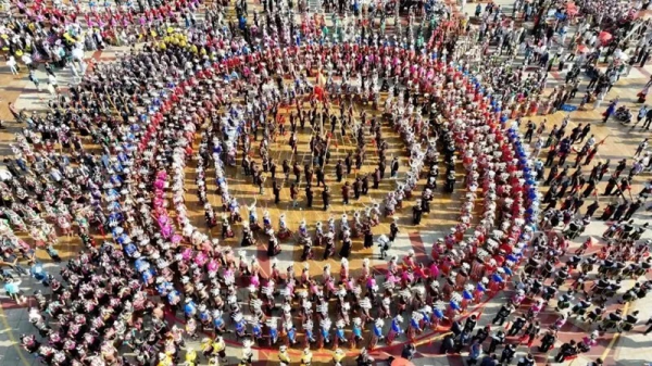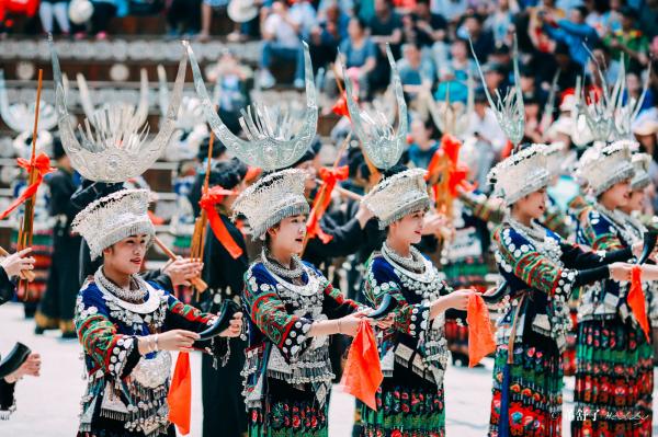 以西江千戶苗寨景區(qū)姑媽籃球場為核心,組織開展苗族敬酒歌、游方對唱、偷親表演、蘆笙演奏、團(tuán)結(jié)舞等節(jié)目,向游客展示西江千戶苗寨獨(dú)有的民族歌舞展演和民風(fēng)民俗,讓游客深入體驗(yàn)苗族的民族風(fēng)情。
