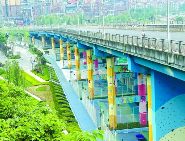 推動文旅產(chǎn)業(yè)高質量發(fā)展,必須擦亮綠色這一鮮明底色。順慶區(qū)清泉壩橋下的“嘉陵綠浪”風景綠道,混凝土橋墩被繪上了個性化彩繪,吸引了人們的目光。一邊是嘉陵江岸優(yōu)美的自然風光,一邊是橋下彩繪的大海、浪花、天空等場景,沿著長廊往里走,足球館、籃球館、乒乓球館、滑行區(qū)、攀巖區(qū)等映入眼簾。