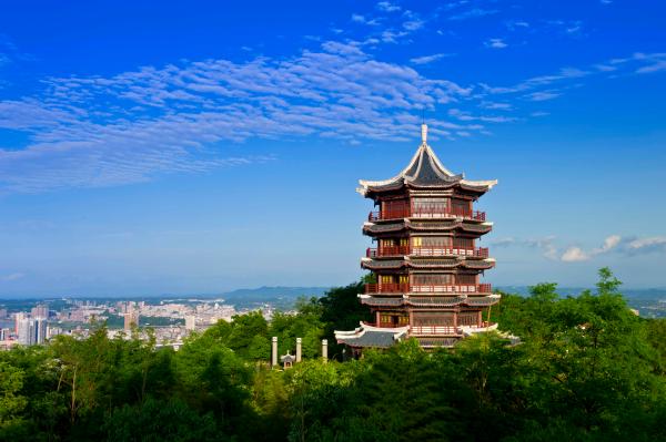 而開漢樓位于石材山頂,既是南充歷史文化富集區(qū),又是登高望遠、鳥瞰南充城市全貌的觀景臺。據(jù)了解,開漢樓高40余米,共6層,全框架塔形結構,漢代風格,屋面采用青灰色琉璃瓦,樓面逐層收分,每層均有走廊環(huán)道,木作門窗,底層漢白玉欄桿相圍。樓前紀信將軍雕塑英武神勇,廣場全青石地板和青石欄桿。