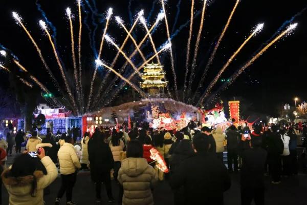 夜幕降臨,華燈初上。近兩年成為黃山文旅產(chǎn)品爆款的百米金龍從流光溢彩的橫江中蜿蜒游來。除了集中展示的如愿燒火塔、齊云打鐵花、白岳煙花秀外,還有噴火、炭花舞、齊福儺舞等節(jié)目,火花、煙花交織,展現(xiàn)出齊云山度假區(qū)煥新出發(fā)的力量,照射出“越夜越精彩”的休寧魅力,更折射出新一年?duì)钤輰幭蛏舷蛐碌牧α俊?/span>