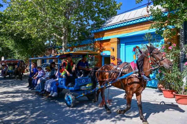 文旅產(chǎn)業(yè)的繁榮最終要回歸到人的獲得感。在喀贊其旅游區(qū),近2萬名居民直接或間接從事旅游業(yè),他們中有人將庭院改造成家訪點,有人駕起盛裝的“馬的”,有人開設(shè)傳統(tǒng)冰淇淋店。當(dāng)?shù)卣ㄟ^免征稅收、財政承租房屋等政策,扶持上百家手工作坊延續(xù)鐵藝、木雕、馬鞍制作等傳統(tǒng)技藝。