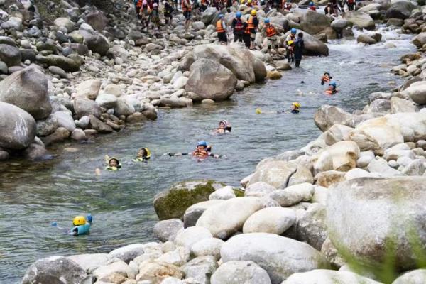 在廣西桂林貓兒山景區(qū),一種被稱為“窩囊漂”的旅游項目人氣頗旺。這一項目區(qū)別于傳統(tǒng)主打驚險刺激的漂流,以慢節(jié)奏、松弛感為調性,游客可以臥躺在水面,享受漂流樂趣。