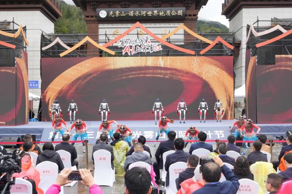 10月18日,第二十三屆四川光霧山國際紅葉節(jié)開幕式上,多臺機器人與舞蹈演員同臺演繹國家級非遺《翻山鉸子》。金屬機械臂隨傳統(tǒng)韻律翻飛,與演員的靈動舞姿相映成趣,剛勁的非遺動作與科技感十足的機械運轉(zhuǎn)完美融合,瞬間點燃現(xiàn)場氛圍。