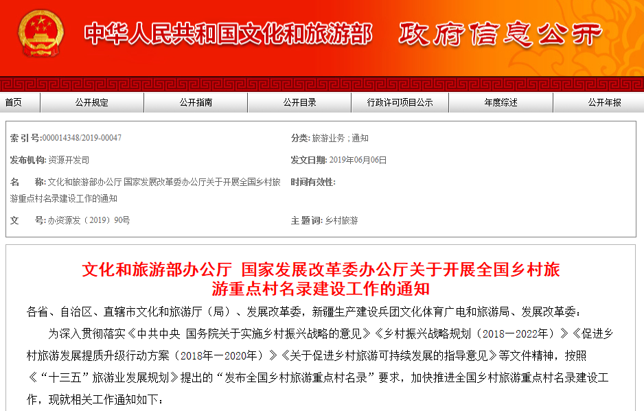 文化和旅游部將在全國遴選一批符合文化和旅游發(fā)展方向、資源開發(fā)和產(chǎn)品建設(shè)水平高、具有典型示范的鄉(xiāng)村,啟動全國鄉(xiāng)村旅游重點村名錄建設(shè)工作。